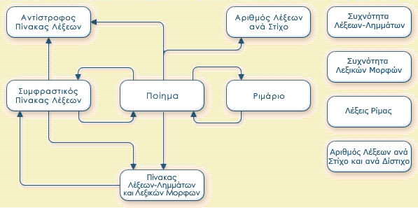 Με την βοήθεια ηλεκτρονικών μεθόδων ανάλυσης και επεξεργασίας που περιγράφονται συνοπτικά στο τυπωμένο υλικό που συνοδεύει το CD-ROM δημιουργήθηκαν περισσότεροι από 850.000 σύνδεσμοι μεταξύ κάθε μιας από τις 84.568 λέξεις του κειμένου και των τριών λεξιλογικών πινάκων. Ο κάθε στίχος του ποιήματος είναι συνδεδεμένος με το ριμάριο (και αντίστροφα). Η αρχιτεκτονική του συστήματος είναι εμφανής στο παρακάτω διάγραμμα: