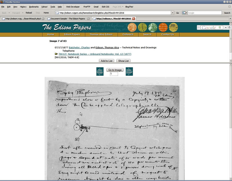O Bob Rosenberg περιγράφει τις μεθόδους που χρησιμοποιούνται για την ηλεκτρονική έκδοση του αρχείου του Thomas Edison (The Edison papers. Το αρχείο του Edison που περιέχει πάνω από 5 εκατομμύρια τεκμήρια και έχει ήδη εκδοθεί σε 162 ρολά μικροφίλμ μεταφέρεται σταδιακά σε ψηφιακή μορφή· το αρχείο παρέχει πρόσβαση τόσο σε ψηφιακές εικόνες των τεκμηρίων όσο και σε αναζήτηση των περιεχομένων μέσω μιας βάσης δεδομένων: