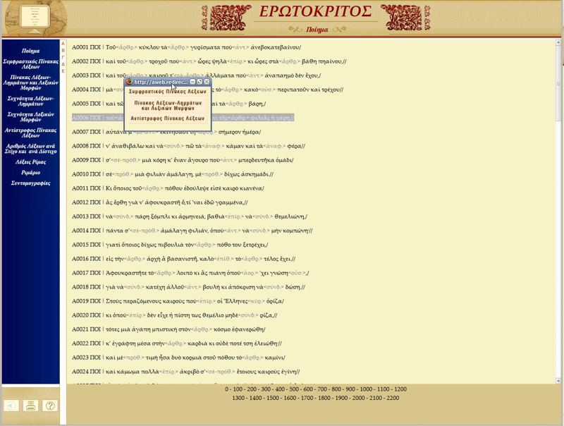[ 5] Δυναμική σύγκριση (collation) τεσσάρων εκδόσεων ενός ποιήματος à http://www.rc.umd.edu/cgi-bin/LB/dcoll/make_poem_frameset.pl/0004