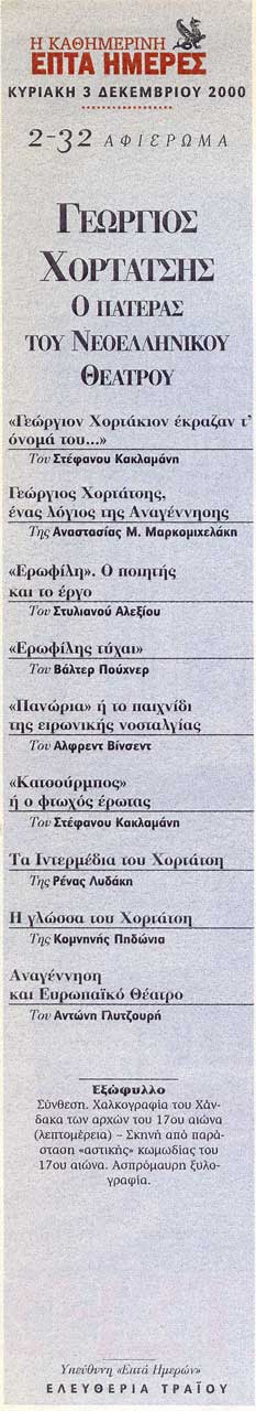 Γεώργιος Χορτάτσης. Ο πατέρας του Νεοελληνικού Θεάτρου