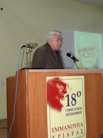 "Για να ακουστεί αυτούσιος ο λόγος του ίδιου του Κριαρά, που μας λείπει εδώ και πάνω από ένα χρόνο ήδη, διάλεξα αυτά τα τρία αποσπάσματα από τα αυτοβιογραφικά έργα του. Τα επέλεξα γιατί δείχνουν την ανάγκη που εκφράζουν να στηρίζεται ο Κριαράς στη συντροφικότητα των άλλων -αλλά και, με τη σειρά του, να δημιουργεί και ο ίδιος και συνθήκες συντροφικότητας για τους άλλους, βοηθώντας προπάντων τους νέους επιστήμονες: η έγνοια αυτή διέκρινε τον βίο του, από τα μαθητικά του χρόνια ως τη βαθιά ωριμότητά του" είπε ο κ. Καζάζης.